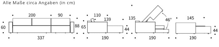 • Maße: ca. 337 x 88 x 190 cm ( B x T x H )
