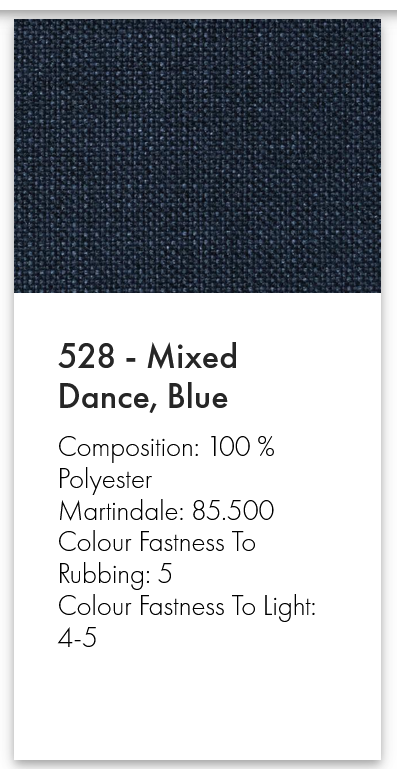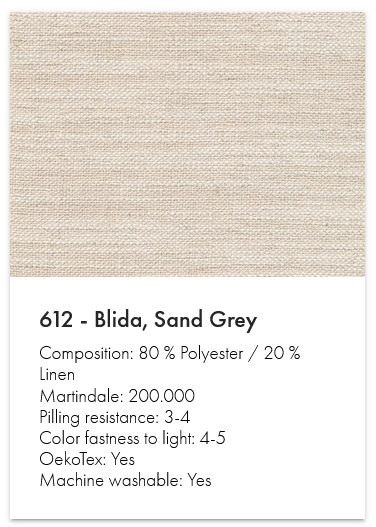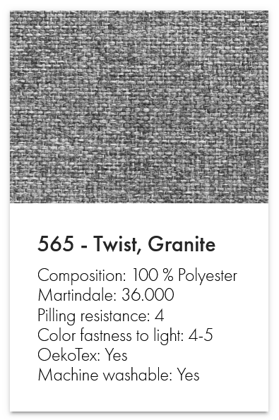 • Bezüge: Linen Sand Grey 612 / Twist Granite 565 / Mixed D. Blue 528