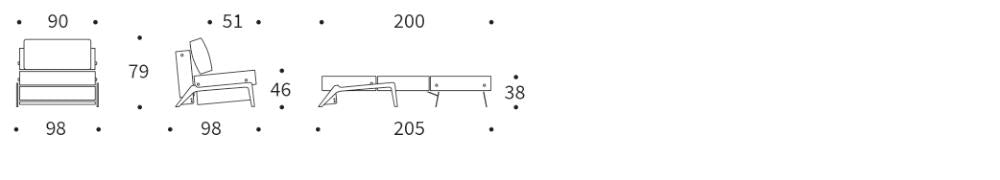 • Maße: 98 x 98 x 79 cm ( B x T x H ) - Liegefläche: 90 x 200 x 38 cm ( B x T x H )